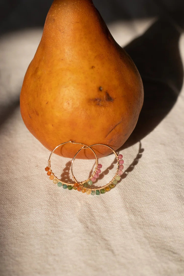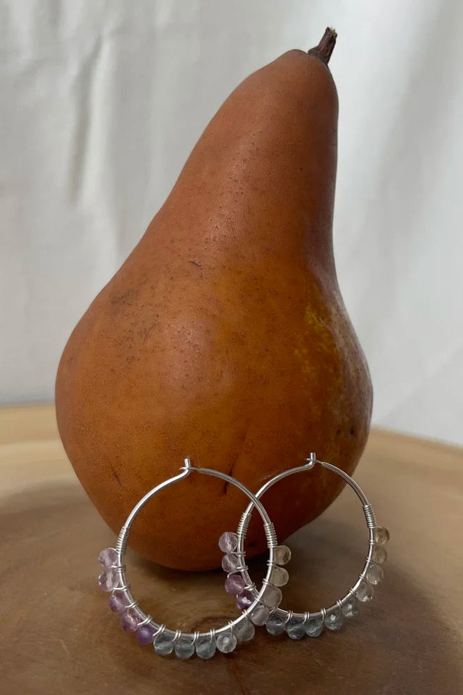 All Earrings are on a 25mm hoop that have been hand wrapped using dainty 2mm stones.